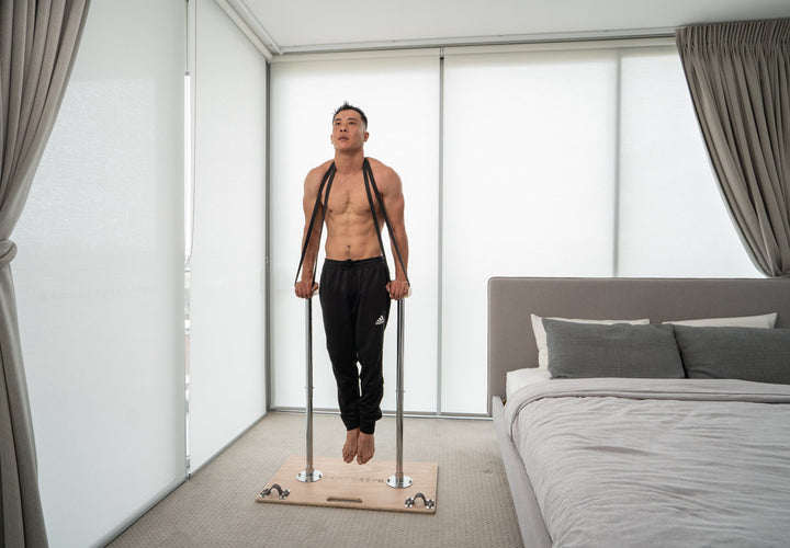 Aggiungi resistenza aggiuntiva ai tuoi esercizi di calisthenics man mano che diventi più forte. Aumenta la tensione della fascia accorciando la sua lunghezza.