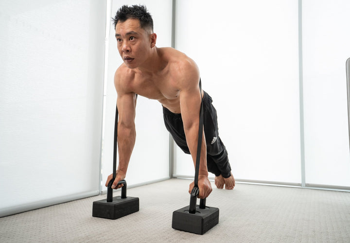 Gli elastici utilizzano il principio della resistenza accomodante; aumentano la resistenza nelle parti dell'esercizio in cui sei più forte. Riduci la lunghezza della fascia per aumentare la difficoltà.